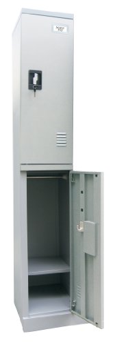 Boltless steel lockers offer quick and easy assembly that won't sacrifice strength! These steel lockers feature sturdy, boltless construction that assembles easily without the use of tools, just snap together. Boltless storage lockers offer the same strength and theft prevention as standard steel lockers. Quick assembly personal storage lockers feature one top and one bottom fixed height shelf for added storage space. Full width garment bar allows easy wardrobe storage. Doors feature a 2-point locking system with recessed locking handle and single prong hook. Bottom of locker door is louvered for ventilation. Powder coat finish. Mobile: 2. Recessed 3 point locking system handle. Dove gray color. Measures 72" height by 12" width by 18" depth.