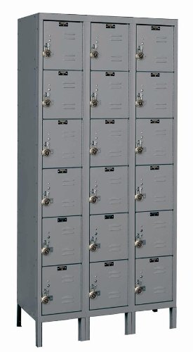 Hallowell Ready-Built URB3288-6A-HG Hallowell Gray Steel Box Locker, 3 Wide with 18 Opening, 6 Tier, 36" Width x 78" Height x 18" Depth, Assembled