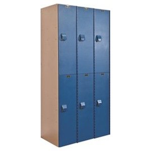 Hallowell HPL3282-2A-TB AquaMax Plastic Locker, Double Tier, 3-Wide, 72" Height x 36" Width x 18" Depth, Taupe Body with Deep Blue Door, Assembled