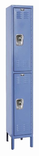 Hallowell Ready-Built URB1288-2A-MB Marine Blue Steel Wardrobe Locker, 1 Wide with 2 Opening, 2 Tier, 12" Width x 78" Height x 18" Depth, Assembled