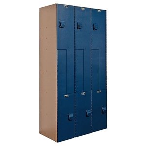 Hallowell HPL3282-ZA-TB AquaMax Plastic Locker, Z-Tier, 3-Wide, 72" Height x 36" Width x 18" Depth, Taupe Body with Deep Blue Door, Assembled
