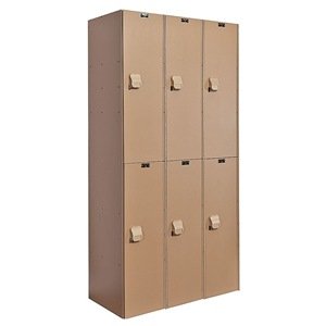 Hallowell HPL3282-2A-TE AquaMax Plastic Locker, Double Tier, 3-Wide, 72" Height x 36" Width x 18" Depth, Taupe Body and Door, Assembled