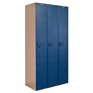 Hallowell HPL3282-1A-TB AquaMax Plastic Locker, Single Tier, 3-Wide, 72" Height x 36" Width x 18" Depth, Taupe Body with Deep Blue Door, Assembled