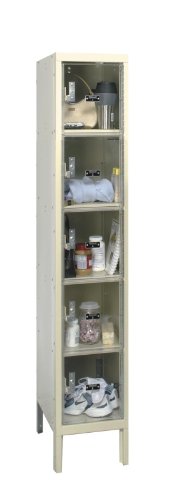 Visibility, these lockers are all about visibility. See what you are missing, see what your employees are storing in your facility, see what your students are storing in your school, see what your employees are hiding. Our Safety-View and Safety-View Plus lockers allow a clear view into the locker so you can monitor locker contents while offering a secure personal storage space. Polycarbonate door panels and all polycarbonate doors provide steel-like strength. Safety-View wardrobe doors are fabricated of heavy-gauge steel with clear door inserts while box lockers include all polycarbonate injection moded doors. Doors include a continuous piano hinge to insure a smooth door operation. Don't be fooled by plexiglas imitations...our Safety-View polycarbonate is designed to hold up to years of heavy-duty use. Our multi-point gravity lift-type latching for wardrobe lockers assures a secure locker while box lockers offer a simple thru-the-door finger pull single-point latch. All doors are louvered for ventilation. Wardobe doors include a stainless steel recessed handle allowing the lock to sit fully-recessed into the door for added safety while reducing vandalism and improving overall locker appearance. Wardrobe lockers allow for larger personal storage while box lockers are perfect for storing of smaller personal items. Locks are not included. Order 3-wide units for best value and order 1-wide units where needed to complete your layout. Lockers are available to ship fully-assembled or knock-down. Color is Parchment.