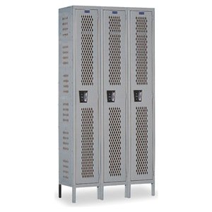 Hallowell U3818-1HDV-HG Hallowell Gray Steel Heavy-Duty Ventilated (HDV) Wardrobe Locker, 3 Wide with 3 Opening, Single Tier, 54" Width x 78" Height x 21" Depth, Knock Down