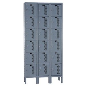 Hallowell U3258-6HDV-HG Hallowell Gray Steel Heavy-Duty Ventilated (HDV) Box Locker, 3 Wide with 18 Opening, Six Tier, 36" Width x 78" Height x 15" Depth, Knock Down
