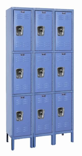 Hallowell Ready-Built URB3258-3A-MB Marine Blue Steel Wardrobe Locker, 3 Wide with 9 Opening, 3 Tier, 36" Width x 78" Height x 15" Depth, Assembled
