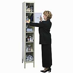 Visibility, these lockers are all about visibility. See what you are missing, see what your employees are storing in your facility, see what your students are storing in your school, see what your employees are hiding. Our Safety-View and Safety-View Plus lockers allow a clear view into the locker so you can monitor locker contents while offering a secure personal storage space. Polycarbonate door panels and all polycarbonate doors provide steel-like strength. Safety-View wardrobe doors are fabricated of heavy-gauge steel with clear door inserts while box lockers include all polycarbonate injection moded doors. Doors include a continuous piano hinge to insure a smooth door operation. Don't be fooled by plexiglas imitations...our Safety-View polycarbonate is designed to hold up to years of heavy-duty use. Our multi-point gravity lift-type latching for wardrobe lockers assures a secure locker while box lockers offer a simple thru-the-door finger pull single-point latch. All doors are louvered for ventilation. Wardobe doors include a stainless steel recessed handle allowing the lock to sit fully-recessed into the door for added safety while reducing vandalism and improving overall locker appearance. Wardrobe lockers allow for larger personal storage while box lockers are perfect for storing of smaller personal items. Locks are not included. Order 3-wide units for best value and order 1-wide units where needed to complete your layout. Lockers are available to ship fully-assembled or knock-down. Color is Parchment.